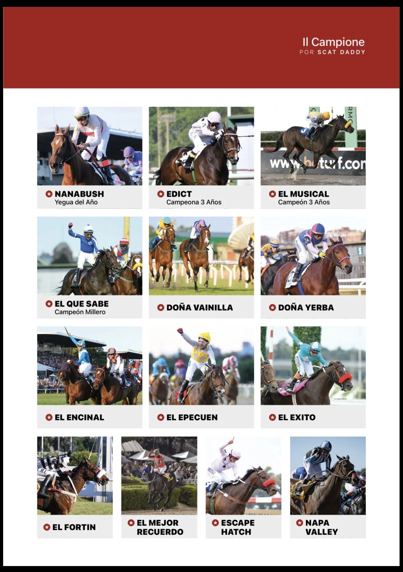 EL MUSICAL G1 ‘Mejor 3 años’, NANABUSH G1 ‘Yegua del Año 2024’, EL QUE SABE G1 ‘Mejor Millero 2024’ , EL ENCINAL G1, EDICT G1, DOÑA YERBA G1, EL EXITO G1, EL EPECUEN G1, EL MEJOR RECUERDO G1, NAPA VALLEY G1, ESCAPE HATCH G1, DOÑA VAINILLA G1, EL FORTIN G1,