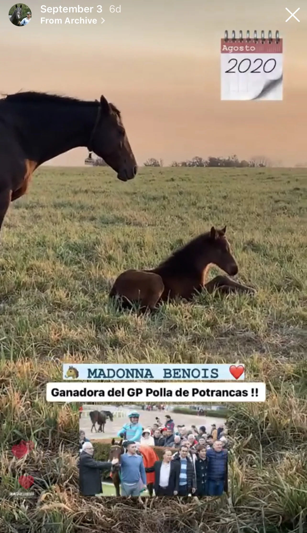 ⚪️ El 15 de Noviembre del 2021, Madonna Benois, con un año y tres meses de edad, fue facturada por nosotros al Sr. Juan Jose Caligiuri, conforme a los acuerdos previamente establecidos entre ambas partes. En esa misma fecha entregamos la transferencia de propiedad, cumpliéndose con lo acordado en esta yegua.